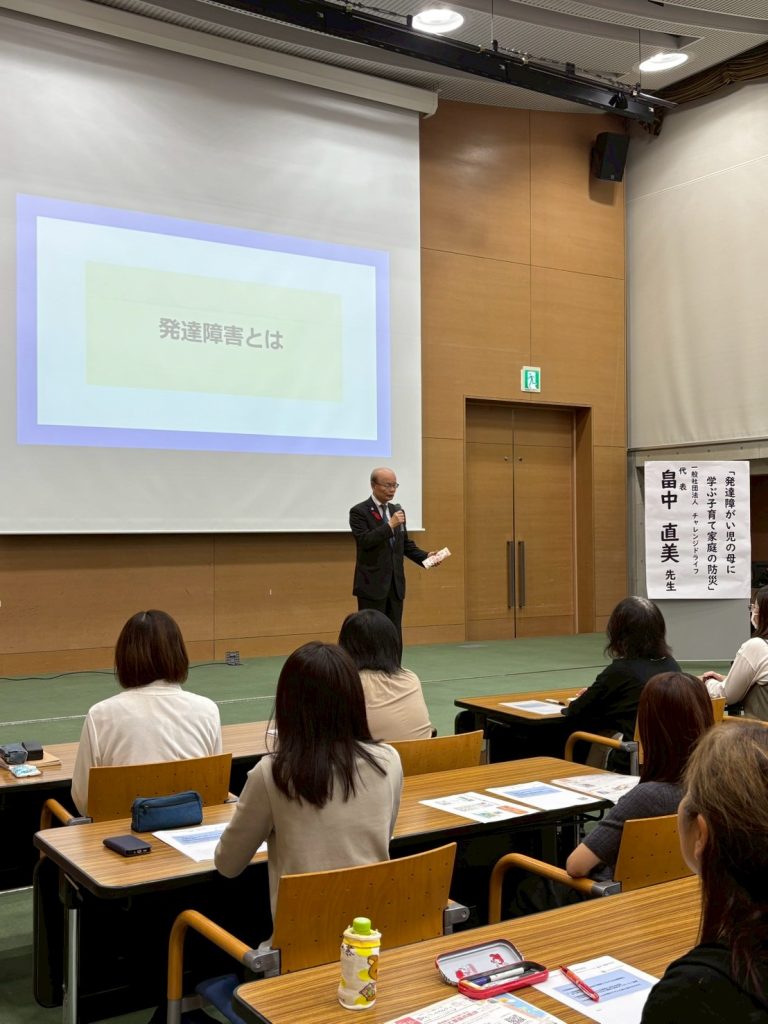 講演では、東日本大震災や能登半島地震などの実際の事例をもとに、発達障害や精神障害のある方々が災害時に直面する困難について、データと実体験の両面から丁寧に解説していただきました。